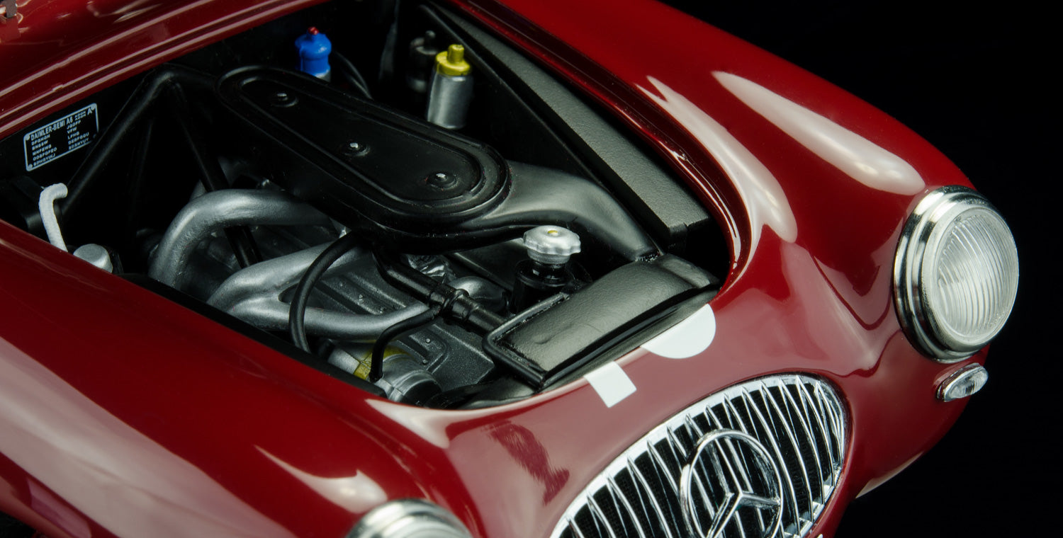 După participarea la cursa Mille Miglia din 1952, Mercedes-Benz se îndrepta spre Marele Premiu al Elveției de la Berna, unde urma să aibă loc un spectacol rar pentru public. Era programată o cursă simultană cu mașini echipate cu motoare de 1.5 litri sau mai mari. Mercedes-Benz a înscris trei modele 300 SL Coupé. Acestea au fost: #16 în roșu, #18 în verde și #20 în albastru. CMC a replicat cu măiestrie aceste trei icoane la scara 1:18, în cele mai mici detalii.